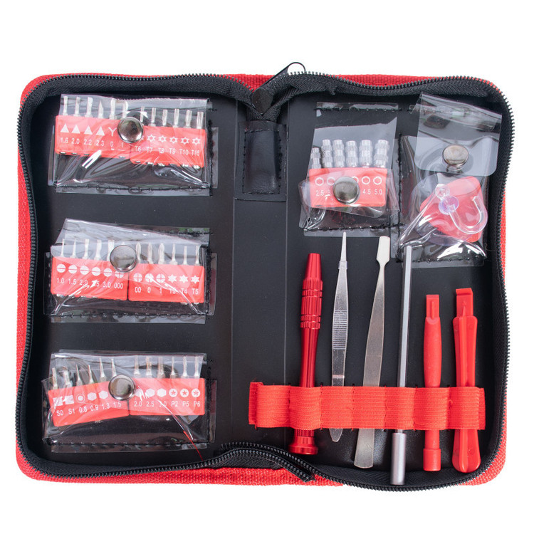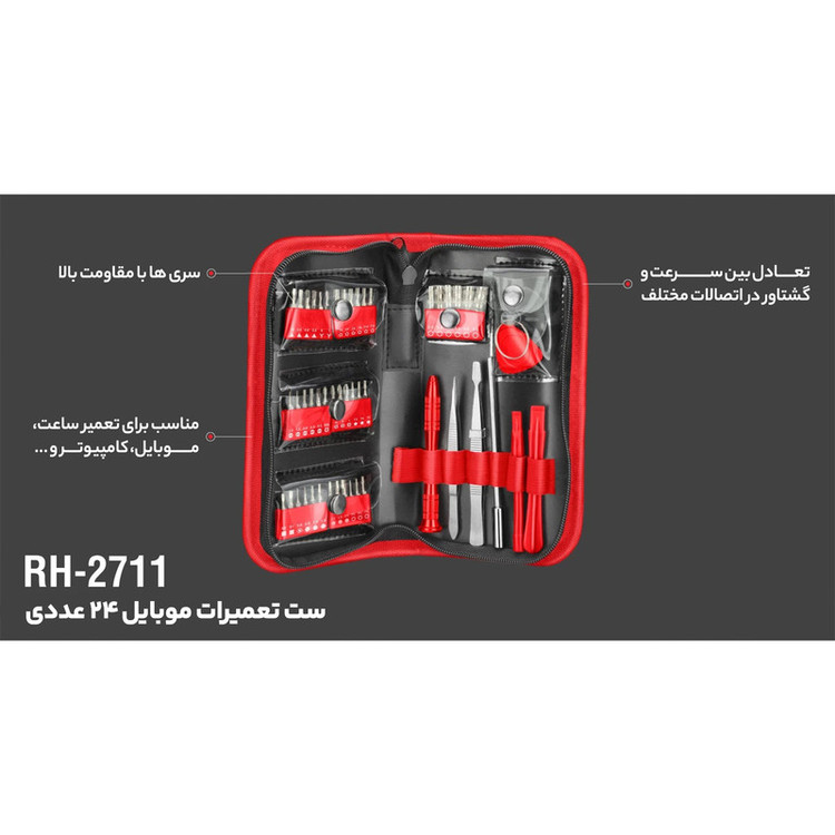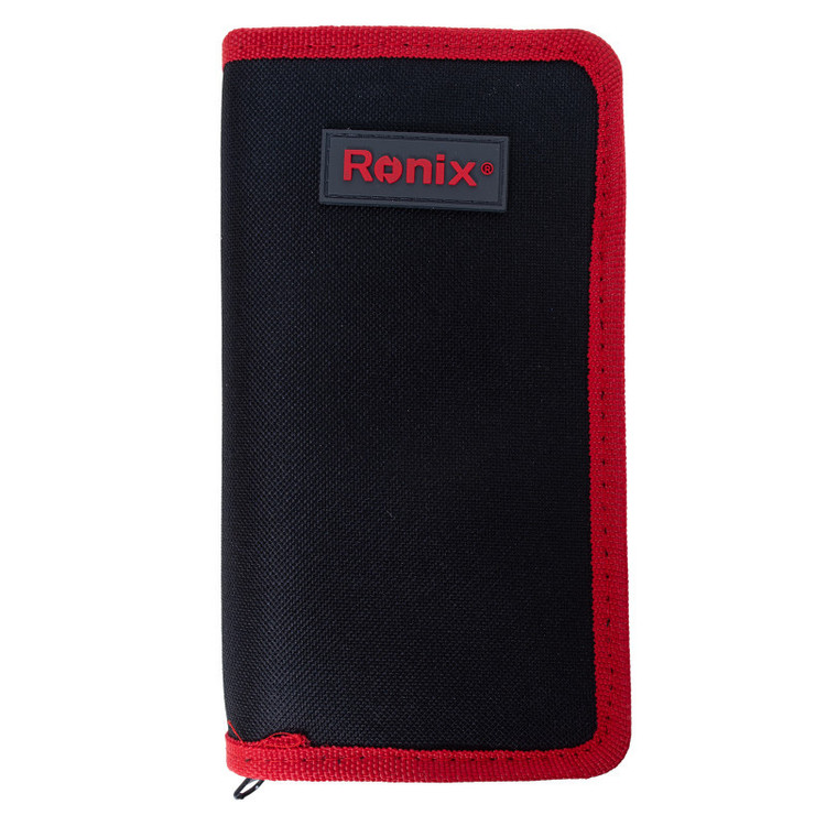 مجموعه پیچ گوشتی، سری پیچ گوشتی، سری بکس و لوازم تعمیرات رونیکس یک مجموعه کامل برای تعمیرات و مونتاژ انواع دستگاه های الکترونیکی و تعمیرات تلفن همراه، دوربین عکاسی، ساعت، عینک و تمام دستگاه های ظریف و کوچک است. این ست تعمیرات موبایل رونیکس دارای یک دسته پیچ گوشتی 8 سانتی متری کاملا آلومینیومی با بیت گیر آهنربایی است که سری های پیچ گوشتی فلزی از جنس فولاد SNCM 8660 به خوبی در درون آن قرار می گیرند و به کار می پردازند.برای راحتی کار و دسترسی به قطعات بد دسترس و داخل در عمق دستگاه ها، این مجموعه به یک دسته اضافه شونده بلند 11.5 میلی متری مجهز شده است.سری های پیچ گوشتی 28 میلی متری این مجموعه شامل چهار عدد سری پیچ گوشتی چهار سو شامل سه سری پیچ گوشتی ساعتی به سایزهای PH000, PH00, PH0 و یک سری پیچ گوشتی چهارسو PH1، پنج عدد سری پیچ گوشتی دوسو به سایزهای 1.0، 1.5، 2، 2.5 و 3، سه عدد سری پیچ گوشتی ستاره ای در سایزهای T3, T4 , T5، شش عدد سری پیچ گوشتی ستاره ای سوراخ دار به سایزهای T6, T7, T8, T9, T10 , T15 ، دو عدد سری پیچ گوشتی چهارگوش یا مربعی به سایزهای S0 و S1 ، هفت عدد سری پیچ گوشتی شش گوش به سایزهای 0.8، 0.9، 1.5، 1.5، 2.0، 2.5 و 3 ، سه عدد سری پیچ گوشتی P به سایزهای P2, P5 , P6، چهار عدد سری پیچ گوشتی مثلثی به سایزهای 1.6، 2، 2.2 و 2.3 و دو عدد سری پیچ گوشتی سه پر به سایزهای 0 و 1 به اضافهی شش عدد سری بکس کوچک به سایزهای 2.5، 3، 3.5، 4، 4.5 و 5 است.برای راحتی کار تعمیرات موبایل و سایر دستگاه ها، در بسته بندی این محصول، دو عدد اهرم پلاستیکی از جنس پلاستیک ABS، دو عدد موچین فلزی، یک پد مثلثی ABS و یک قطعه چسبنده به سطح از جنس PVC قرار داده شده است.نکته خوب درباره این ست، داشتن یک کیف برزنتی زیپ دار مرغوب است که قطعات را به خوبی در درون خود نگاه می دارد. تمام این ست پیچ گوشتی تعمیرات موبایل رونیکس هم در یک جعبه مقوایی قرار گرفته که با وزن کلی 340 گرم و ابعاد بسته بندی 20.5×11×4 سانتی متر توسط شرکت رونیکس در کشور چین ساخته شده است.