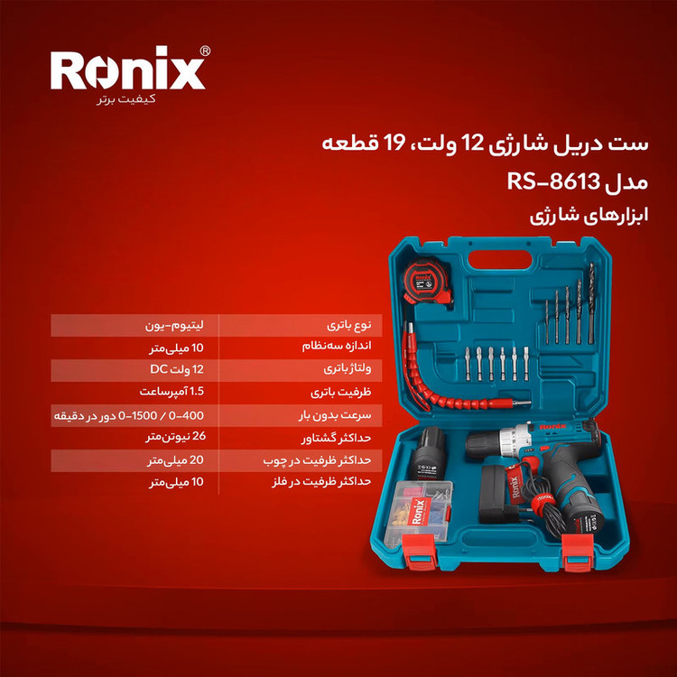 ویژگیهای دریل: سیستم گردش تکجهت , سیستم گردش چپگرد , قابلیت کنترل سرعت , قفل سوییچ