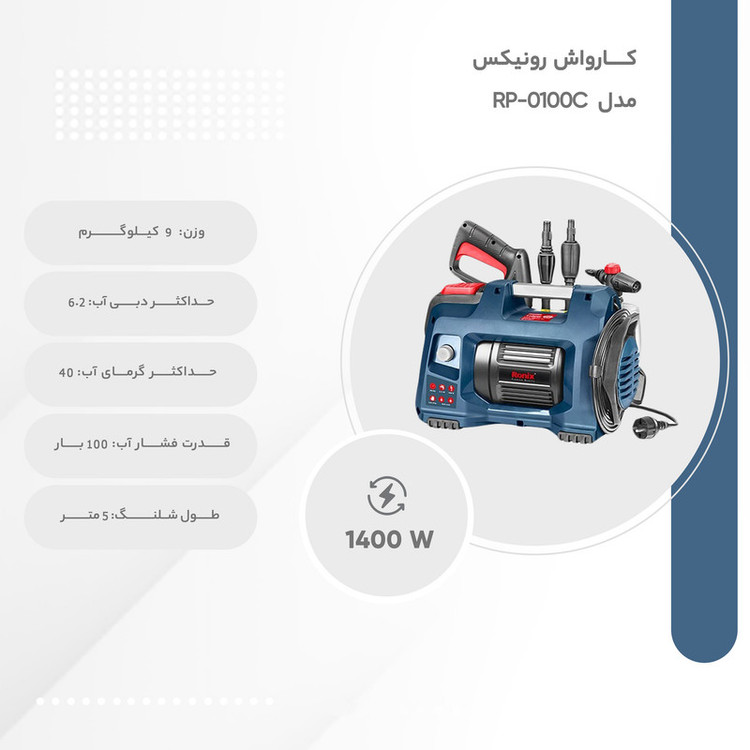دارای 5 متر شلنگ فشار قوی با کیفیت بالا 1عدد لانس و رابط ، تفنگ، مخزن مایع، سوزن تمیزکننده نازل و کوپلر اتصال سریع