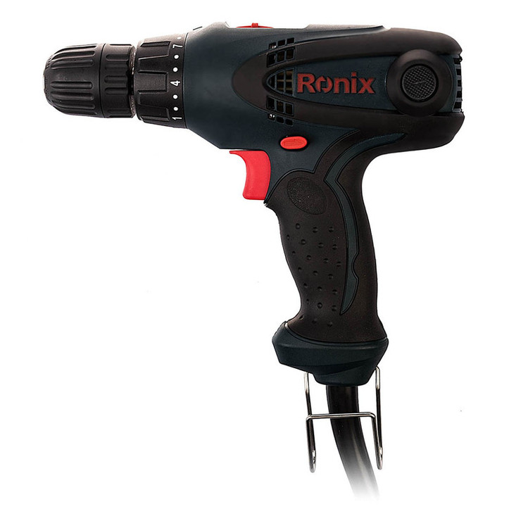 دریل پیچ گوشتی برقی «Ronix» «رونیکس» را مشاهده میکنید. این محصول تحت عنوان مدل (2513T) در بازار موجود است. وزن این دریل پیچ گوشتی 1.3 کیلوگرم است و منبع تغذیه آن برق است. ولتاژ ورودی آن 220 ولت است و قابلیت کنترل سرعت گردش آزاد بین 0 تا 440 و همچنین 0 تا 1650 دور بر دقیقه را دارد. این دستگاه دارای مشخصاتی از قبیل قابلیت تنظیم گشتاور در 18+1 حالت مختلف، لامپ LED در حال کار بودن دستگاه و دکمه کم و زیاد کردن سرعت است. حداکثر قطر سوراخکاری در چوب و فلز این دستگاه بهترتیب 26 و 10 میلیمتر است. دریل پیچ گوشتی رونیکس همچنین مجهز به قلابی مخصوص برای آویزان کردن دستگاه است. طول کابل برق این ابزار 2 متر است و سه نظام آن قابل تنظیم برای انواع متههای 1 تا 10 میلیمتری است. دریل پیچ گوشتی رونیکس با مدل 2513T گزینه مناسبی برای افرادی است که به دنبال محصولات با کیفیت هستند.