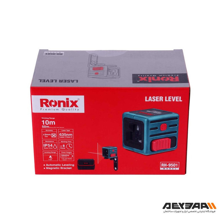 تراز لیزری دو خط رونیکس مدل RH-9501 دارای عملکرد دو خط قرمز عمودی و افقی، دارای قابلیت نمایش خطوط به صورت همزمان برای انجام طیف وسیعی از فعالیت، مجهز به خود ترازی اتوماتیک با دقت بالا، دارای قابلیت پاندول، دارای بدنه ای بسیار مستحکم و پوشیده شده از رابر مقاوم در برابر ضربه، ضد گرد و غبار و مقاوم در برابر رطوبت و سقوط از دست کاربر با استاندارد بین المللی IP54 ، دارای قابلیت کار با لوازم جانبی مختلف برای انجام عموم فعالیت ها و همچنین مجهز به پایه آهنربایی منحصر به فرد را میتوان از ویژگی های مهم این دستگاه به شمار آورد