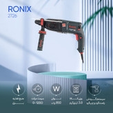 شرکت رونیکس (Ronix) با ارائه چندین مدل دریل، انتخاب یک دریل مناسب را برای مشتریان راحت کرده است. مدل 2726 با وزن 3 کیلوگرم و ابعاد 41 × 28 × 12 سانتیمتر ، یک دریل ضربهای با قدرت 850 وات است. سرعت این دریل در حالت بدون بار تا 1200 دور بر دقیقه میرسد و دارای قابلیت کنترل سرعت است. این دستگاه هم برای مصارف تجاری و هم برای استفاده در اماکن صنعتی مناسب است. این دریل توانایی سوراخکاری در چوب، فلز و بتون را دارد و حداکثر قطر سوراخ در این چوب، فلز و مصالح، به ترتیب 30، 13 و 26 میلیمتر است و برای تعویض مته نیازی به آچار ندارد. 2726 یک دریل بتنکن مناسب جهت کار در بسیاری از مشاغل صنعتی به شمار میآید. دریلهای برقی مختلفی در مدلها و طرحهای مختلف، توسط شرکتهای معتبر و جویای نام، تولید و به بازار عرضه شدهاند. مسلما این محصولات باهدف تأمین نظر مشتری و باقابلیتهای مختلف طراحی و تولید میشوند. خریدار با در نظر گرفتن مشخصاتی چون اندازه، قدرت و لوازم جانبی دستگاه در کنار شکل ظاهری و برند آن، اقدام به انتخاب و خرید دریل برقی موردنیاز خود میکند. در خصوص دریلهای چکشی و ضربهای که بیشتر برای امور صنعتی کاربرد دارند نیز به همین روال عمل میشود. بهخصوص کسانی که در مشاغلی چون آهنگری، کارگاههای ساختمانی و کار با بتون و مشتقات آن هستند، برای خرید دریل مورداستفاده خود، جدای از مشخصههایی که ذکر شد به دنبال دستگاهی کارآمد و پرتوان هستند که در کنار قدرت و سرعت مناسب، عمر طولانی داشته باشد. نکته مدنظر این افراد غالبا قدرت ضربه و عملکرد مناسب دستگاه در ساعات کار طولانی و پشت سر هم است. هرقدر دریل توانایی تحمل کار در این شرایط را داشته باشد، بیشتر موردتوجه کاربران و متقاضیان قرار میگیرد.