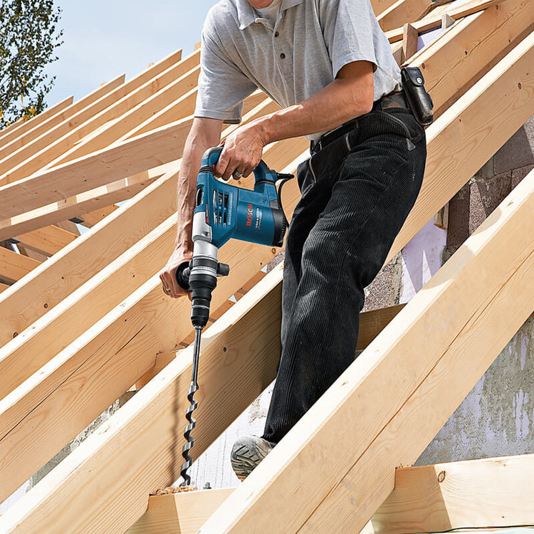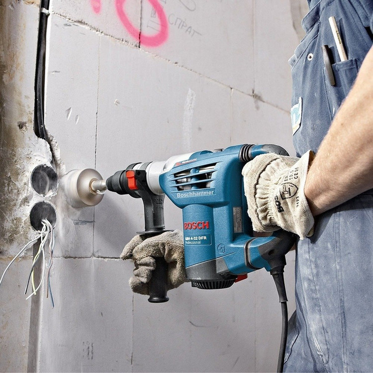 برای سوراخ کردن و تخریب سطوح سیمانی، گچی و سیمانی میتوان از دریلهای بتن کن استفاده کرد. این دریلها میتوانند با ترکیب حرکت چرخشی و کوبشی سطوح ساخته شده از مصالح ساختمانی،فلزات و چوب را سوراخ کنند. در این دریلها نرخ ضربه و انرژی که دستگاه قادر است در هر ضربه آزاد کند اهمیت زیادی دارد. محصول فوق یکی از دریلهای تولیدی شرکت «بوش» بوده که نرخ ضربهی مناسبی دارد. نرخ ضربهی این محصول بازهای بین 3600 تا 0 ضربه در دقیقه داشته و این مقدار با سرعت چرخش دستگاه رابطهی مستقیم دارد. این دستگاه میتواند در هر ضربه انرژی برابر 4.2 ژول را بر سطح وارد کند که برای دستگاهی با توان 900 وات مقداری مناسب است. سرعت این محصول با کمک شستی دیمرداری که دارد در 6 حالت مختلف قابل تنظیم است. از آنجایی که ضربات زیادی به مته و قلم قرار گرفته روی دستگاه وارد میشود در این محصول از سهنظام SDS- plus استفاده شده است. این سه نظام چهار شیار قدرت نگهداری بالایی داشته و میتواند مته و قلم را بهخوبی روی دریل نگه دارد. شرکت بوش این محصول را تحت عنوان مدل «GBH 4-32 DFR» به بازار عرضه میکند.