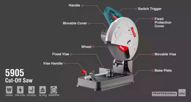 اره پروفیل بر رونیکس مدل 5905 ظرفیت ۲۴۰۰ وات سایز ۳۵۵ میلیمتر