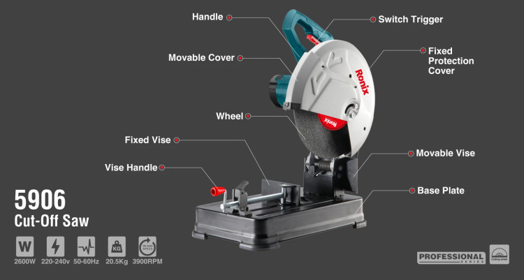 اره پروفیل بر رونیکس مدل 5906 ظرفیت ۲۶۰۰ وات سایز ۳۵۵ میلیمتر