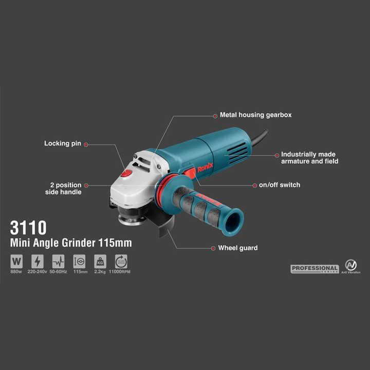 مناسب برای برش انواع قطعات و صفحات فلزی و استیل مینی سنگ فرز با موتور حرفه ای 880 وات صنعتی مجهز به صفحه برش با سایز 115 میلی متر حداکثر سرعت در حالت آزاد برابر با 11000 دور بر دقیقه مجهز به قفل اسپیندل جهت تعویض هرچه ساده تر صفحه برش محفظه عبور جریان هوا جهت خنک سازی هرچه بهتر موتور کلید خاموش و روشن ایمن به همراه کابل برق مقاوم دسته جانبی ضد لرزش با قابلیت نصب در دو طرف طراحی کاربر پسند و سبک وزن با قابلیت نگهداری طولانی مدت