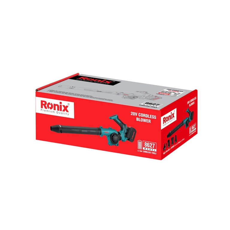 بلوور شارژی ۲۰ ولت دسته گردان رونیکس مدل ۸۶۲۷، ابزار حرفهای برای پاکسازی سریع و راحت محوطهها و پیادهروها از برگ و گردوغبار است. این دستگاه مجهز به موتور ذغالی قدرتمند با حداکثر سرعت ۲۰۰۰۰ دور بر دقیقه است که علاوه بر توان بالا، دوام بالایی نیز دارد. سیستم مدیریت الکترونیکی (EMS) این بلوور شارژی باعث افزایش کارایی آن میشود. همچنین محافظ داخلی این بلوور شارژی رونیکس از آن در برابر ولتاژ پایین و جریان اضافه محافظت میکند. این بلوور شارژی رونیکس دارای لوله دمنده و نازلهای جداشونده است که استفاده و نگهداری از آن را راحتتر کرده است. باتری این بلوور شارژی لیتیومیونی با ولتاژ ۲۰ ولت و ظرفیت ۴۰۰۰ میلیآمپر ساعت است که با سایر ابزارآلات شارژی 20 ولت سری 86 رونیکس سازگار است.