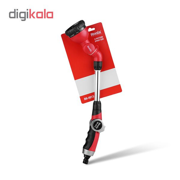 مدل محصول RH-4013 برند رونیکس دارای 9 حالت مختلف برای پاشش میباشد و قابلیت تنظیم زاویه و جهت پاشش آب را دارد و دارای طراحی ارگونومیک به منظور کاربری آسان و طولانی و دارای طراحی صنعتی با ایجاد فشار مضاعف و مجهز به دسته تی پی آر ضد لغزش میباشد . این محصول ساخته شده از بهترین مواد اولیه با بالاترین کیفیت میباشد و دارای سایز استاندارد قابل استفاده برای تمام شلنگ های باغبانی و طراحی منحصر به فرد جهت صرفه جویی در مصرف آب را دارد .