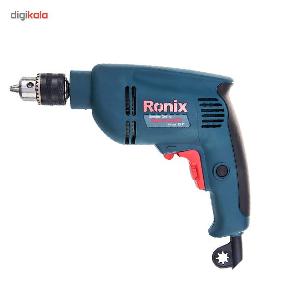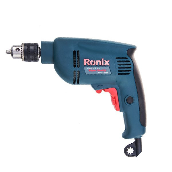 دریل ابزاری شناخته شده در صنعت برای سوراخکاری سطوح مختلف است. دریل (Ronix) «رونیکس» تحت عنوان مدل (2111) در بازار موجود است. از این ابزار میتوان برای سطوح چوبی و فلزی استفاده کرد. حداکثر قطر سوراخکاری این دریل در چوب 25 و در فلز 10 میلیمتر است. این ابزار مناسب برای سوراخکاری معمولی است. وزن این چکش 1.7 کیلوگرم، توان آن 480 وات، ولتاژ ورودی آن 230 ولت و منبع تغذیه آن برق است. سرعت گردش آزاد این محصول 3000 دور بر دقیقه است، سیستم گردش چپگرد و راستگرد دارد و دارای قفل سوییچ است. سایز سه نظام این دریل بهصورت آچارخور 10 میلیمتر است. مشخصه دیگر 2111، قابلیت کنترل سرعت آن است که بدین وسیله میتوان جهت سوراخکاری در سطوح مختلف، سرعت را کم و زیاد کرد. دریل رونیکس دارای موتوری پرقدرت است که باعث افزایش سرعت در پیشروی میشود. با استفاده از این محصول با کیفیت شرکت رونیکس، عملیات سوراخکاری در چوب و فلز را میتوانید بهراحتی انجام دهید.