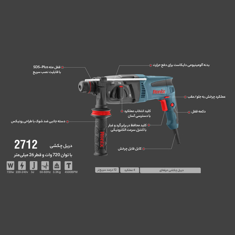 طراحی ارگونومیک و جمع و جور برای استفاده راحت در کاربریهای طولانی مدت و دارای روکش لاستیکی بر روی دسته برای کاهش خستگی کاربر و مجهز به سیستم پیشرفته کلاچ ایمنی جهت محافظت بیشتر از دست کاربر در هنگام استفاده روی سطوح بسیار متراکم