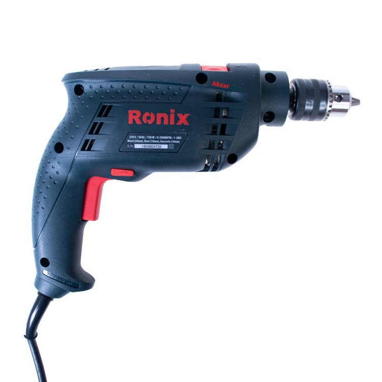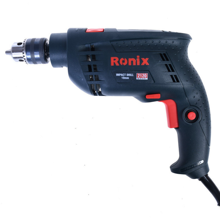 دریل چکشی 750 وات رونیکس مدل 2120، با ساز و کاری مقاوم، برای سوراخکاری و نصب قطعات در صنایع گوناگون فلز، چوب و بتن طراحی شده است. این دستگاه دارای ظرفیت سوراخکاری 20 میلی متر در چوب، 10 میلی متر در فلز و 10 میلی متر در مصالح است. ظرفیت سه نظام این دریل، 10میلیمتر است. این سهنظام آچارخور، به سبب چکشی بودن و نوع کاربری، از مقاومت بالایی برخوردار است. آچار سه نظام، جزو اقلام همراه ابزار، در بسته بندی دستگاه موجود میباشد و بهوسیلهی یک غلاف پلاستیکی به کابل دریل نصب شده است که این نیز از ویژگیهای کاربردی دستگاه به حساب میآید.در قسمت بالای بدنهی دریل، یک شاسی دو وضعیتهی روان برای تغییر حالت دریل از حالت چکشی به دوار و برعکس درنظر گرفته شده که کارایی دستگاه را تا میزان خوبی بالا میبرد. این دریل دارای کلید چپگرد-راستگرد و دسترسی راحت برای تغییر جهت میباشد.این دریل 750 وات، دارای کابل سهمتری با مقاومت عالی است و محل اتصال کابل با محافظ کروی و دوار، علاوه بر سهولت در استفاده و قدرت مانور بیشتر، موجب افزایش طول عمر دستگاه نیز میگردد.
